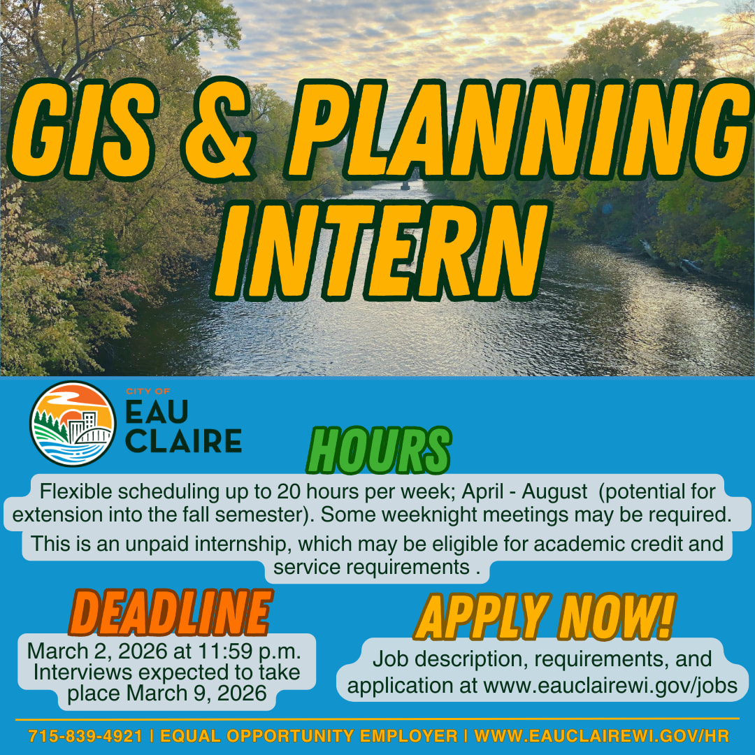 This is an unpaid internship, which may be eligible for academic credit. The application and full job description are available at www.eauclairewi.gov/jobs.